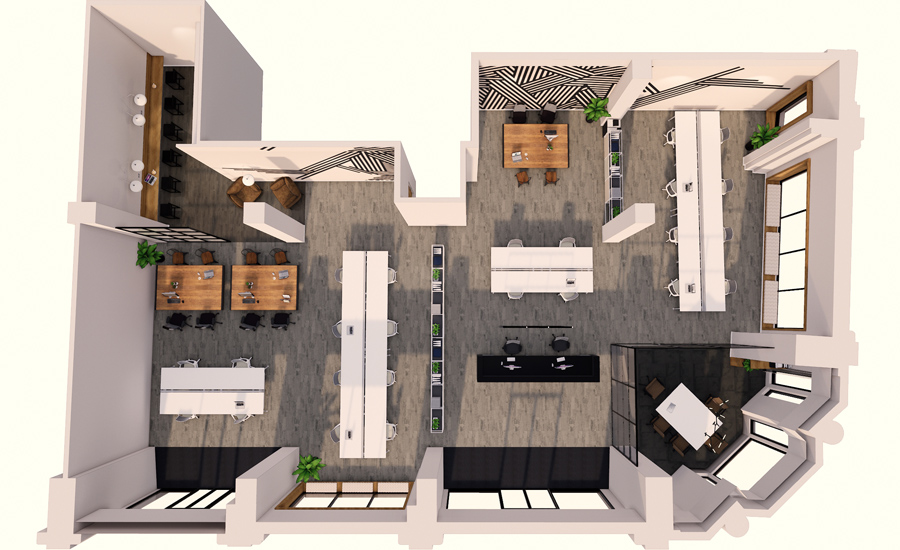 Due to its prime location on Pall Mall, it was felt that this corner unit could become a show piece for CEG and the Exchange Station brand so a modern/ stripped back look and feel was to be captured in a CAT-A fit out.
