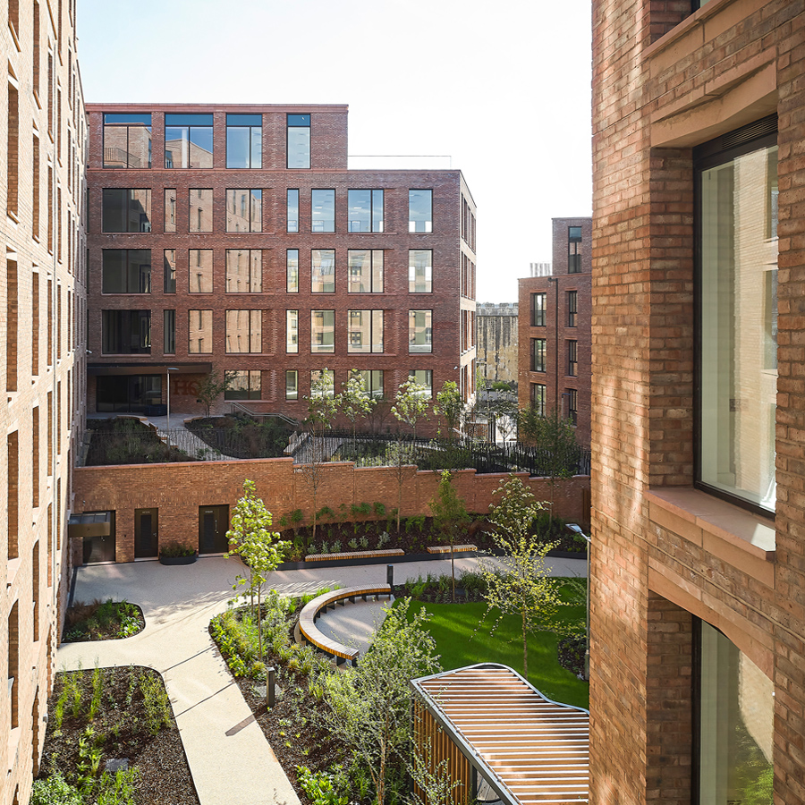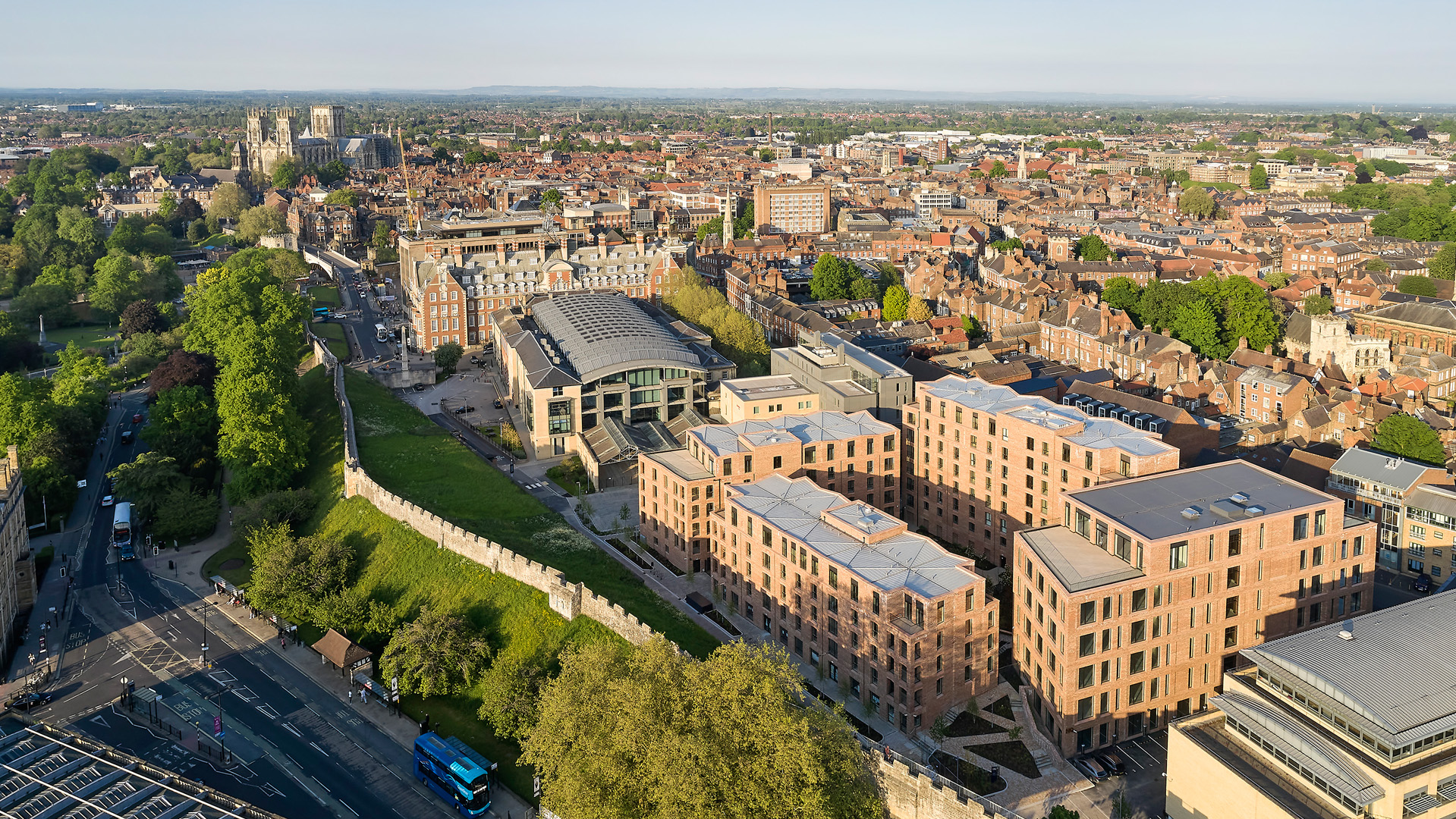 The massing of Hudson Quarter’s buildings was carefully designed to step down from Toft Green towards the City Walls, so as not to dominate the latter. A single brick type was used to clad the buildings: its selection key in tying the buildings to their location and providing the architecture with a calm, timeless quality.