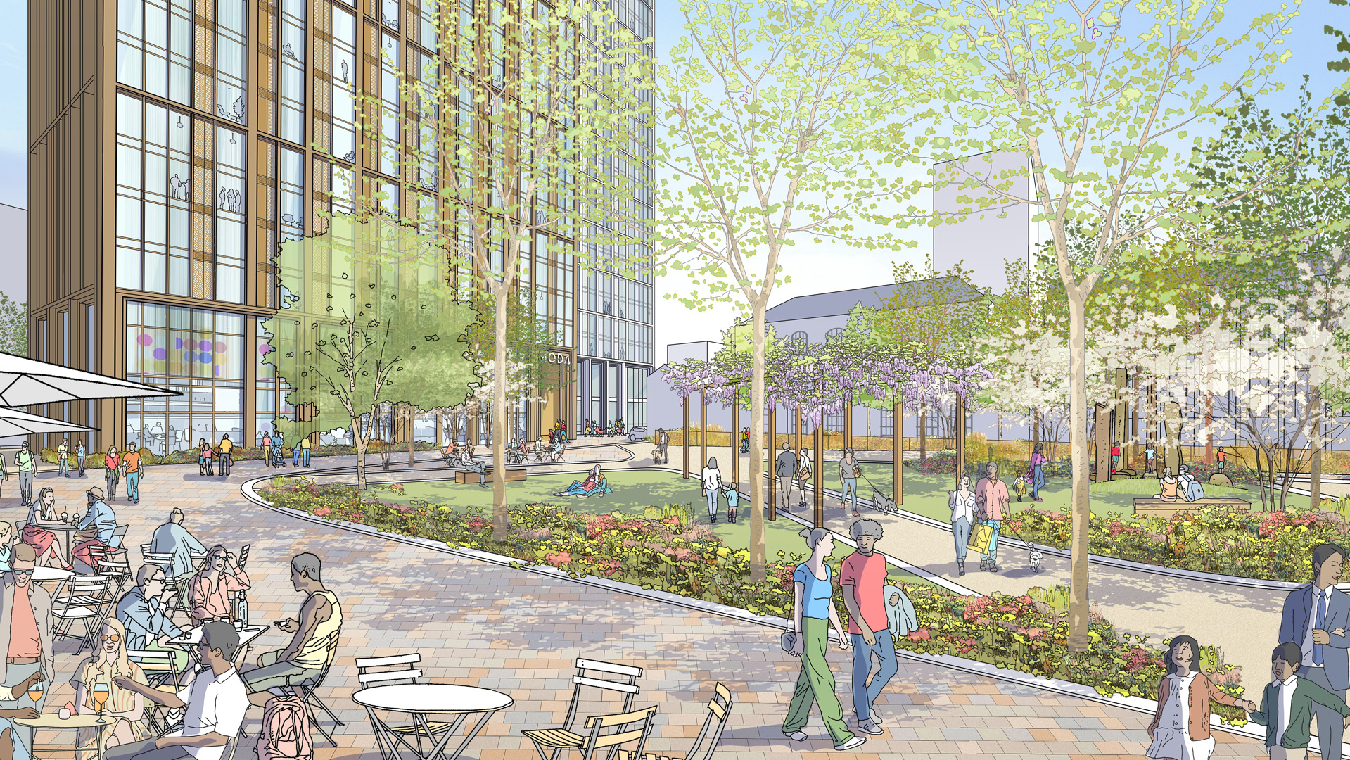 Anchored by 2,400 new homes in a mix of tenures, the 11-acre New Garden Square masterplan will include a new park, along with retail space, a range of cafes, bars and restaurants, as well as community amenities and industry-leading workspace.