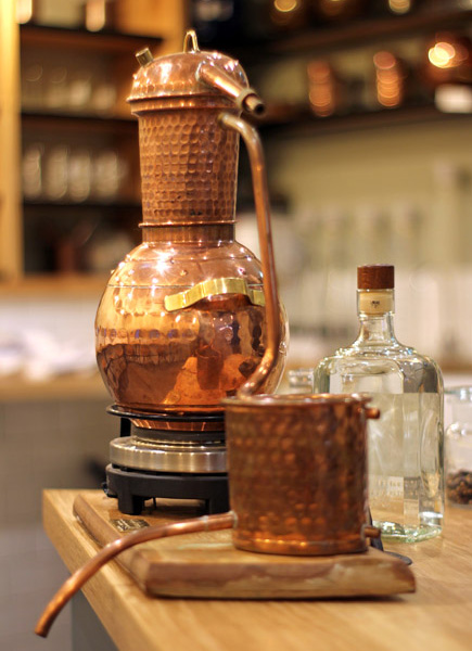 The period property on Montpellier Parade provides the perfect back drop for the brand. The apothecary styled retail space on the ground floor embodies the true Spirit of Harrogate; original aged timber floors, apothecary display units, a retail counter utilising an original haberdashery unit, lacquered steel and oak display shelving dressed with copper and glass distillation apparatus and botanical elements.