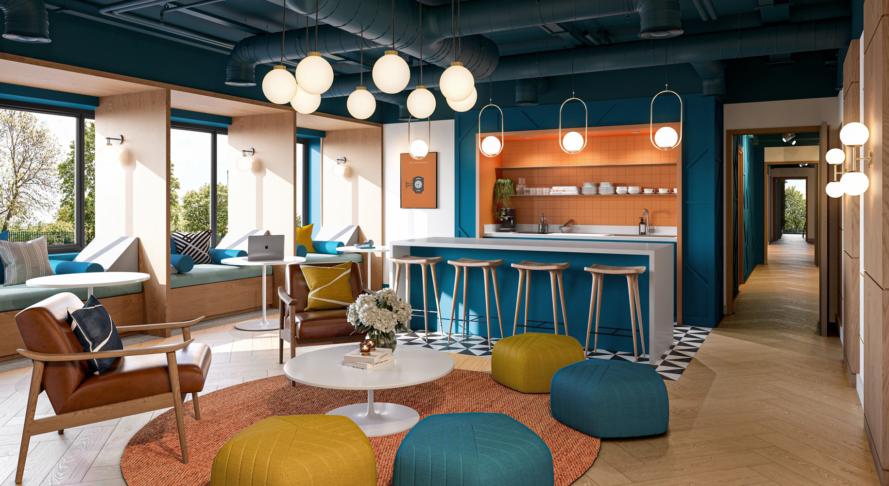 Trapezium is our second project for Leeds based student operator Torsion Group and follows the successful design of their Birmingham property – Compass,. Fuse’s appointment covers the design (to RIBA Stage 04) of all social spaces including, outside terrace, onsite gym, cinema room, kitchen/diner, lounge and co-working space. In line with the properties branding the interior design focusses on students wellbeing and safety whilst using bold colours and pattern to create a vibrant and stimulating backdrop to the students daily life.