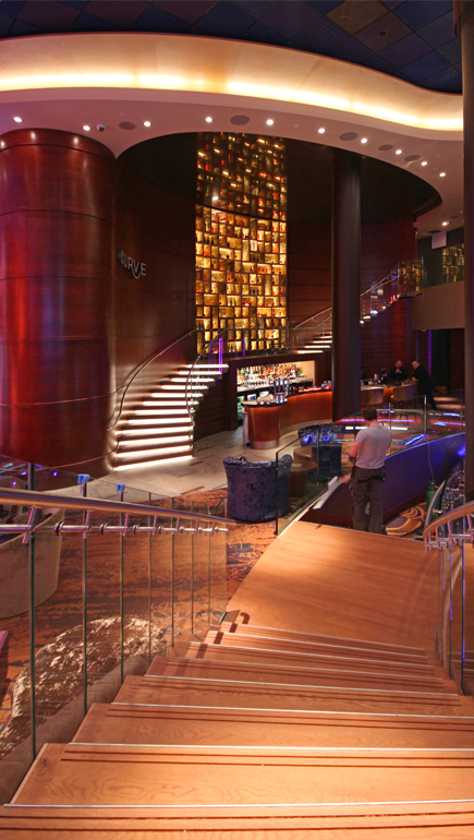 The bars are very deliberately designed to appeal to different audiences – or to the same audience at different times. Groups of friends might gravitate to Live whereas couples might be more inclined to spend time at Curve. Live is situated close to the entrance and provides a convenient refuge for the first-time casino visitor.