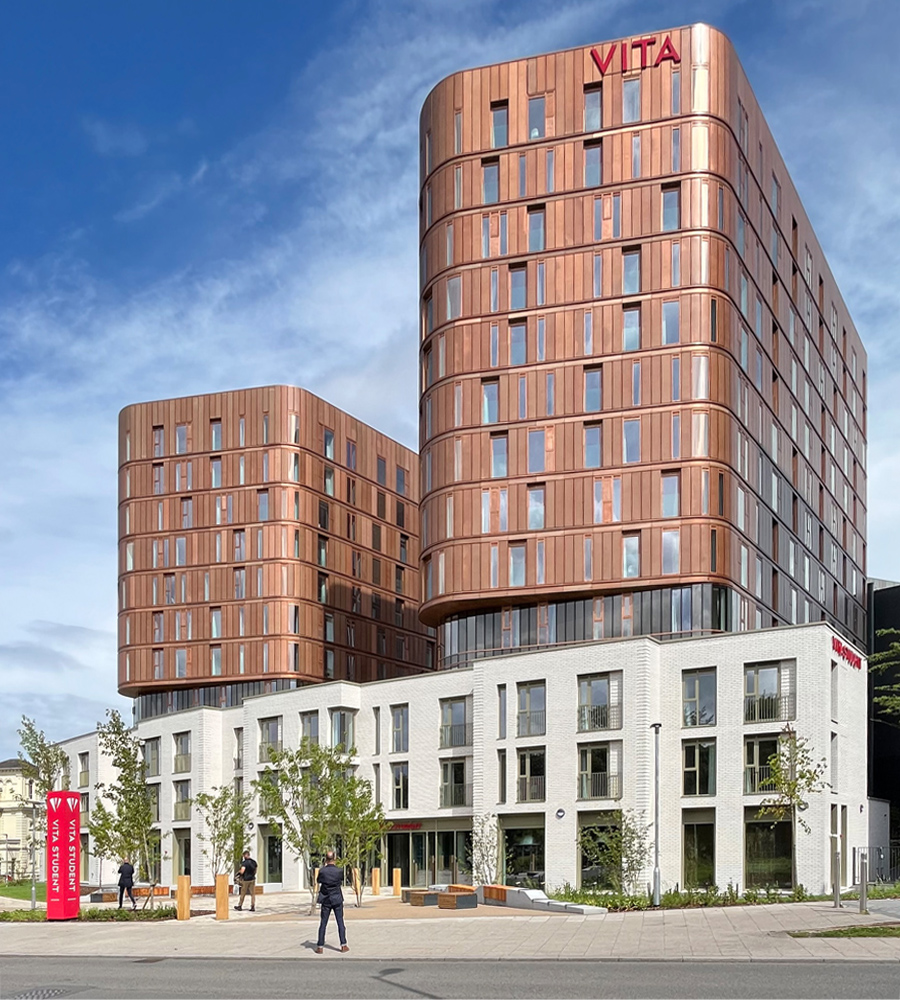 The eye-catching “Copper Towers” development signifies a key milestone for the Vita Student brand, marking the 10,000th bed delivery during the brand’s ten-year anniversary. We are delighted to have successfully worked with this amazing client throughout this period.