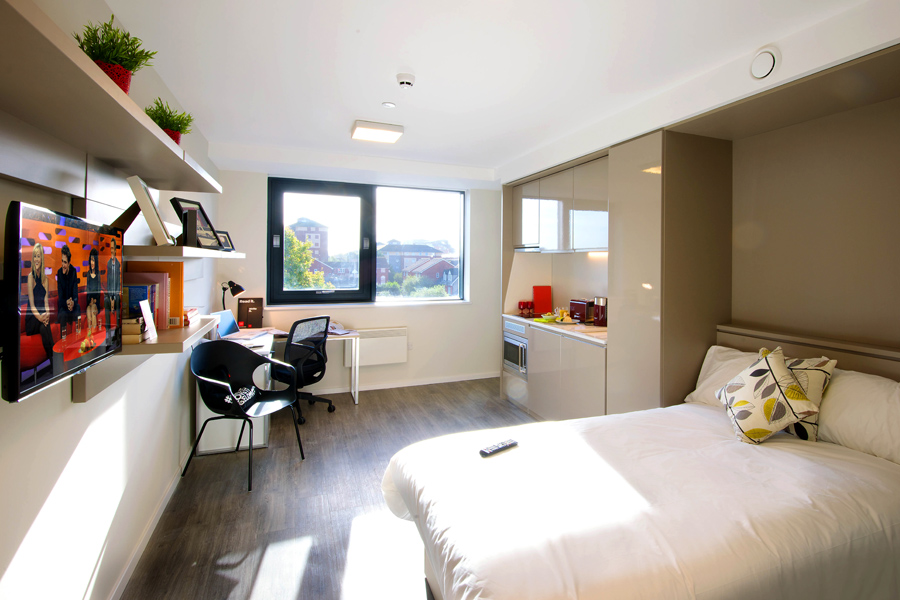 The super-cool, luxury student accommodation in Southampton designed by Fuse for VITA Student opened in September 2014.  The conversion of Richmond House, a former 12 storey city centre office building, boasts 212 stylish, new studio apartments and some stunning shared spaces. Less than a mile from Southampton Solent University and within walking distance of Southampton’s stunning waterfront it’s now the top choice for students in the city.