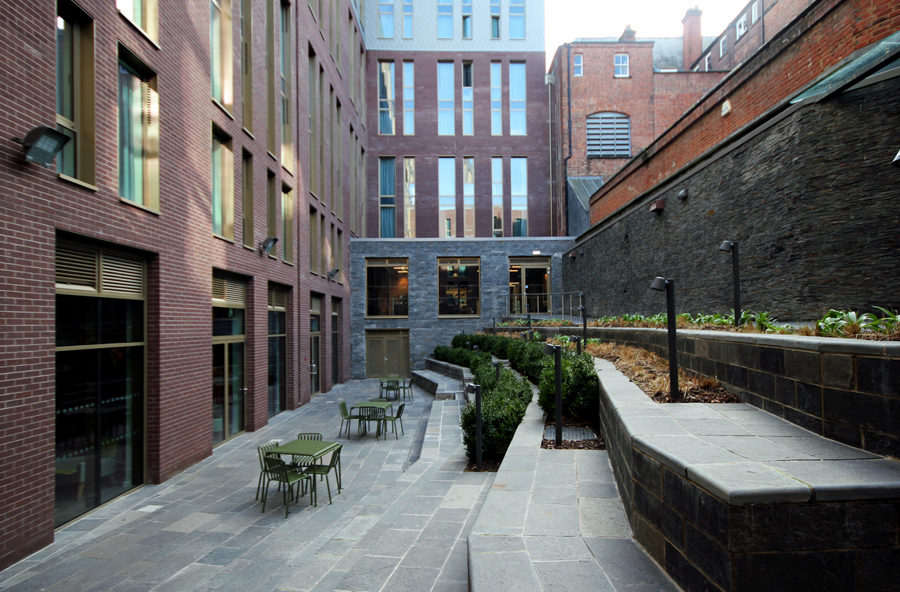 Respecting the heritage of the surrounding listed buildings and location within one of the city’s Conservation Areas, high quality external cladding materials were incorporated into the building’s design. The overall design concept was to use traditional materials into the façade treatment, whilst elevating the building in a contemporary manner.